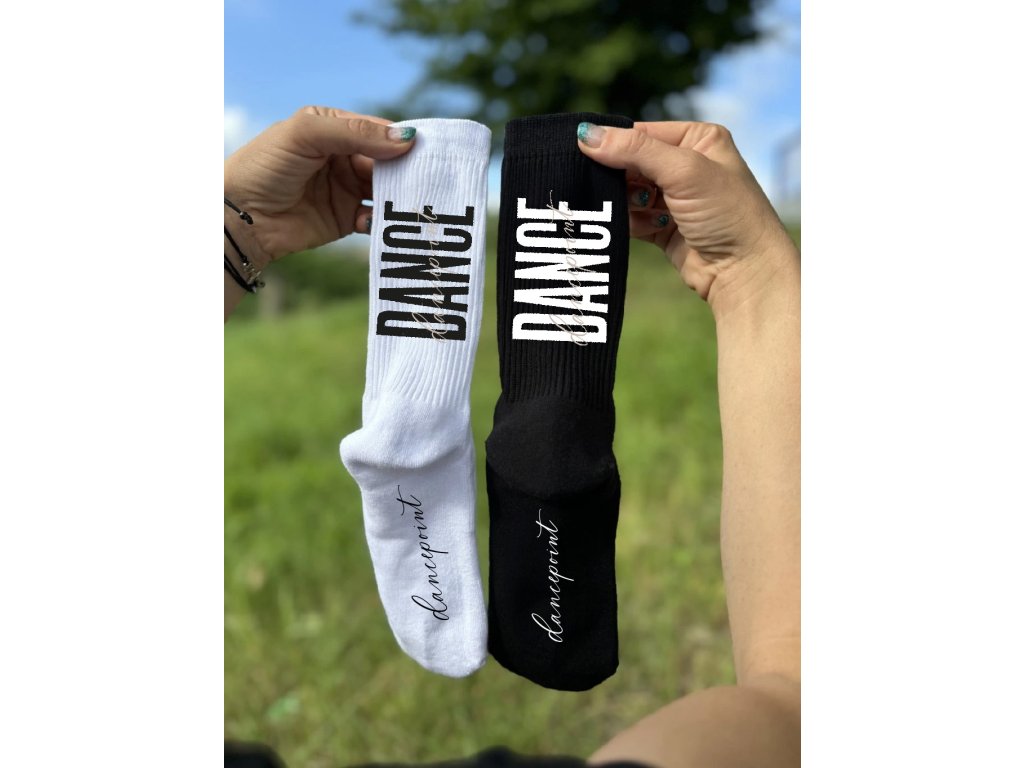 Dopřejte si pohodlí i styl s klubovými ponožkami DancePoint! Na zadní straně mají nápis "DANCE" a na spodní straně logo našeho studia. Ponožky jsou vyrobeny z kvalitních materiálů a díky bavlně jsou měkké a prodyšné, ideální pro trénink i každodenní nošení.